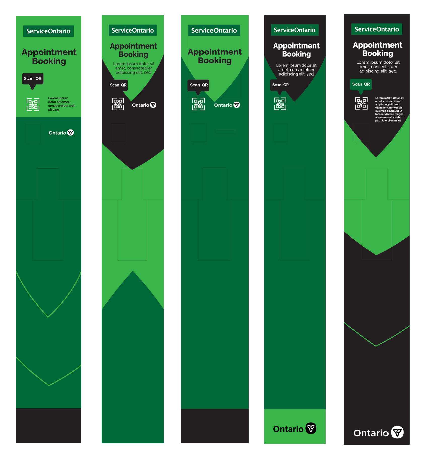 ServiceOntario required a set of kiosk wraps for their on-site terminal trial. I provided four mock-ups and production art files to the printer.