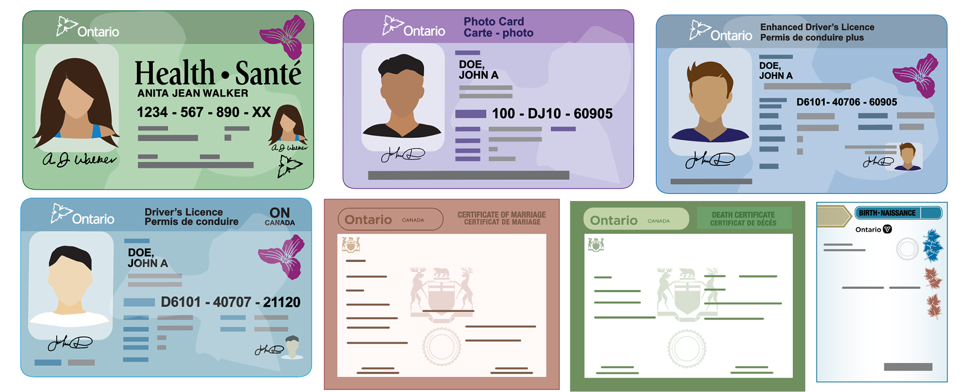 Over the years, ServiceOntario required new and refreshed vector assets of various certificates and cards.